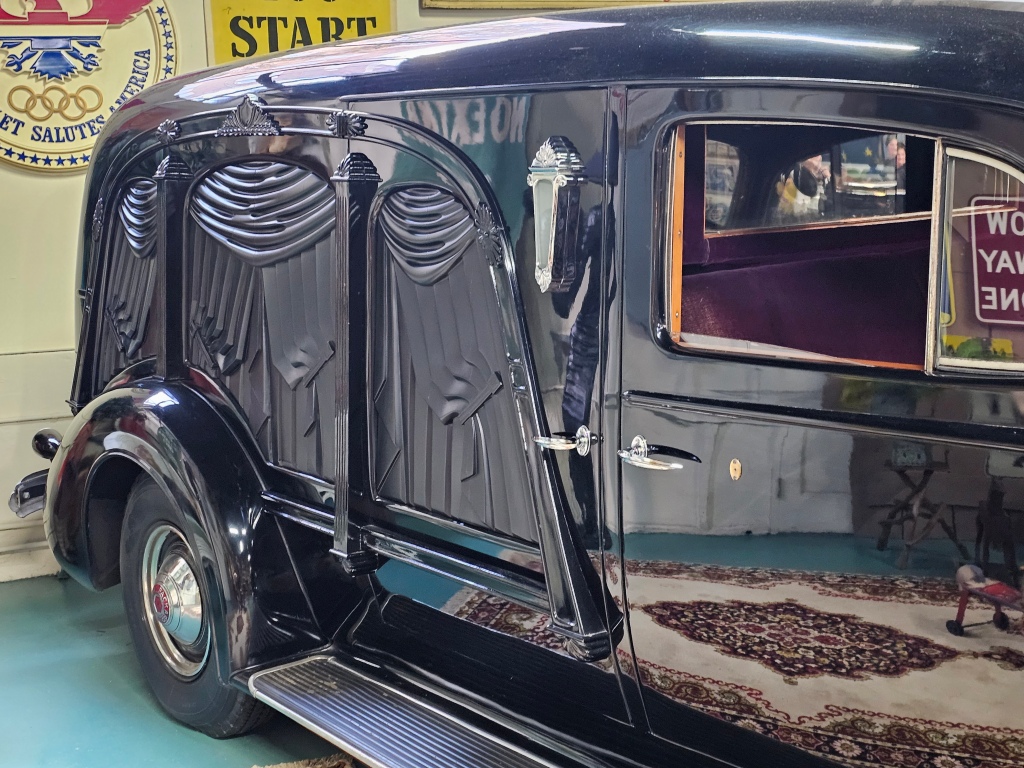 The car at left resides in our Canton Room. It is a gorgeous 1937 Studebaker President Bullet-Proof Police Car. You can step right up and admire the bullet-resistant window glass that is over an inch thick. Each window features a closable Tommy gun porthole.